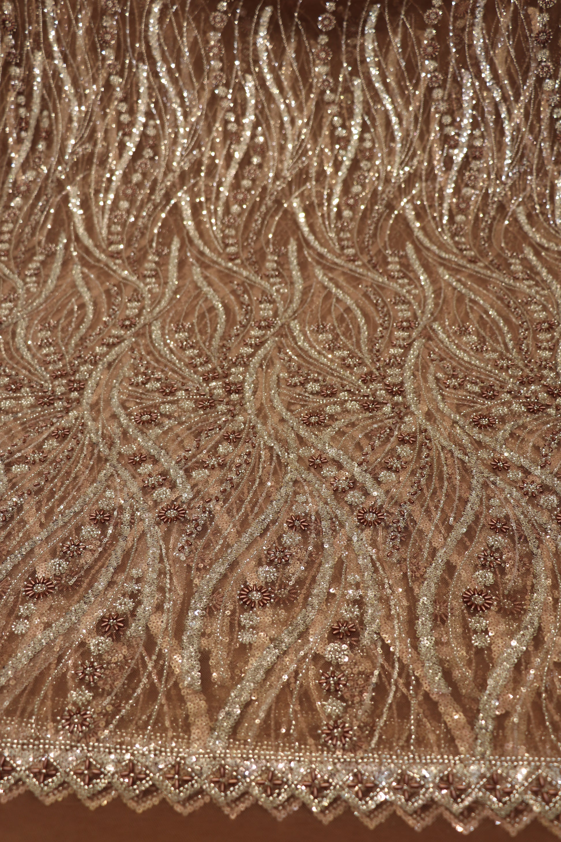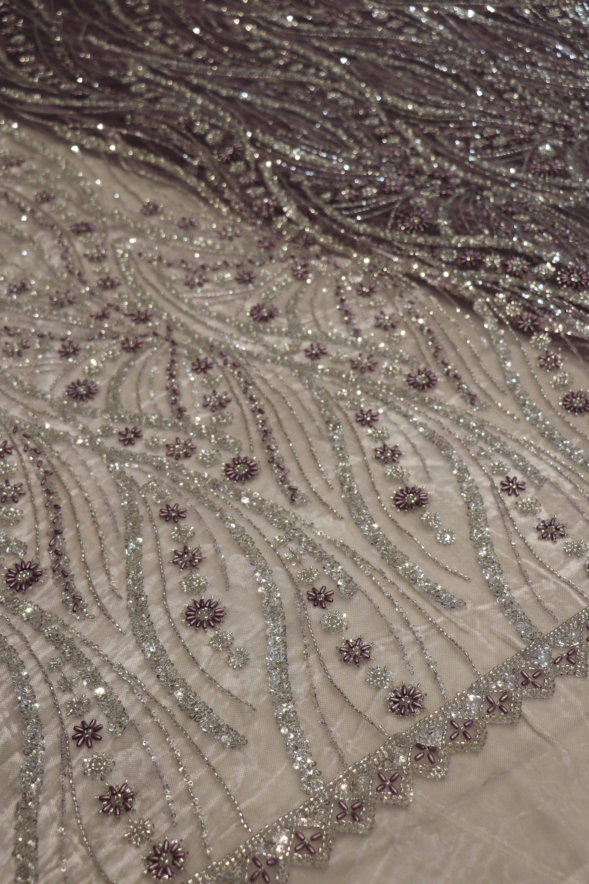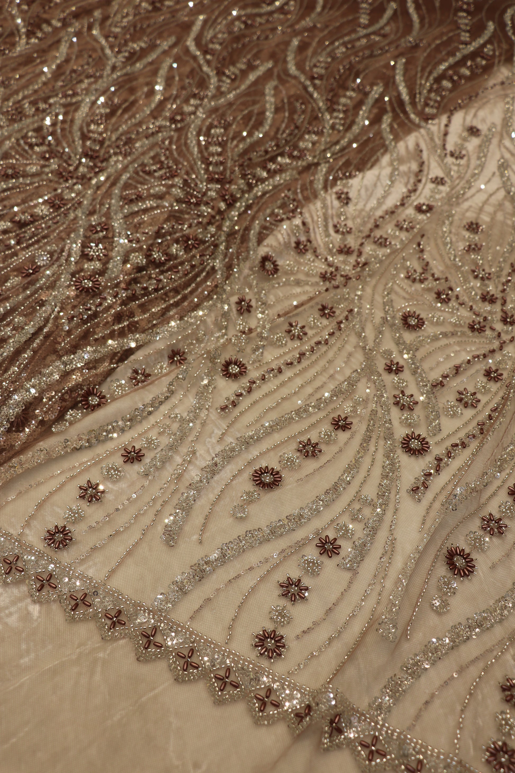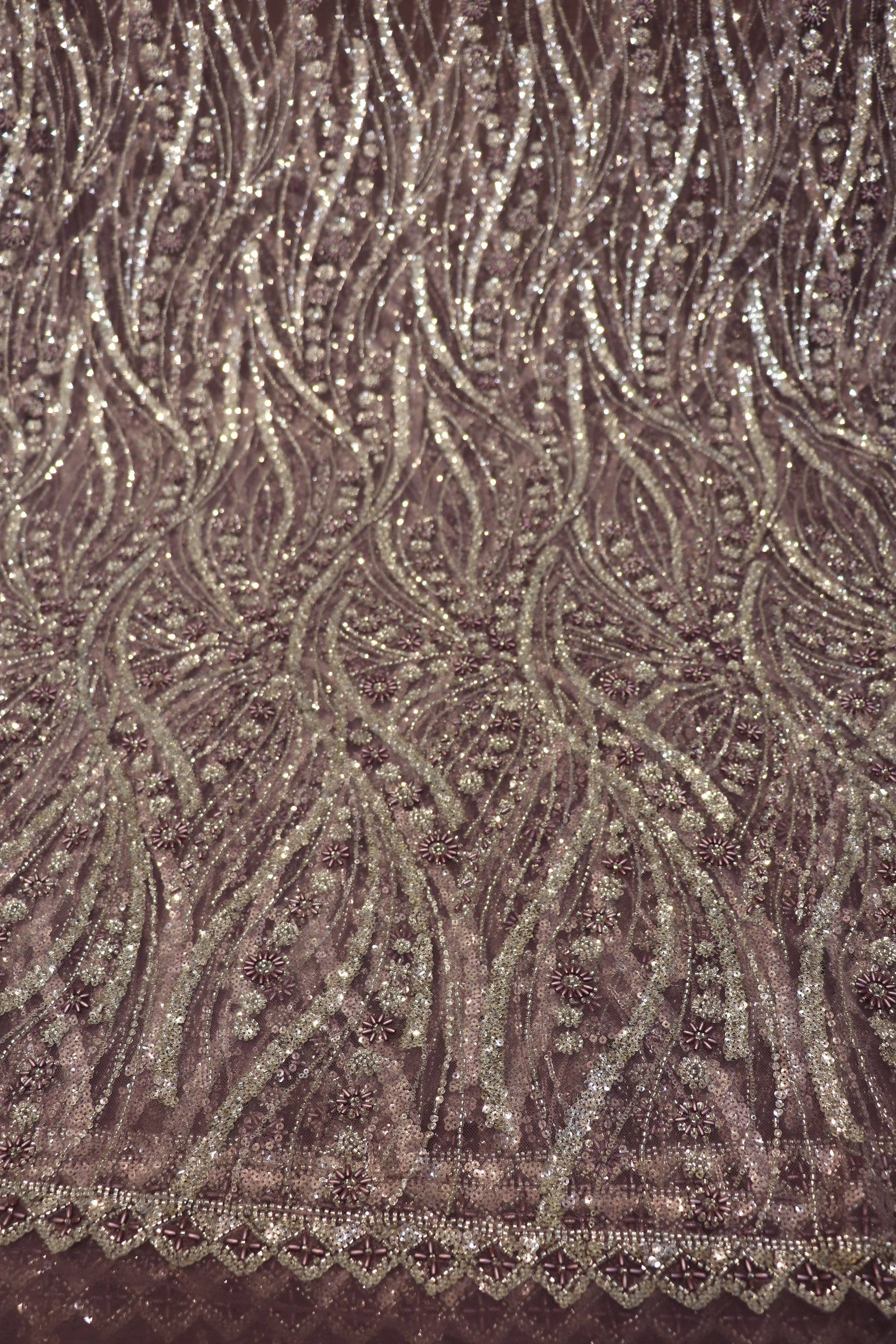 Cross Wave Patterned Nets Embellished With Sequins & Cut Beads