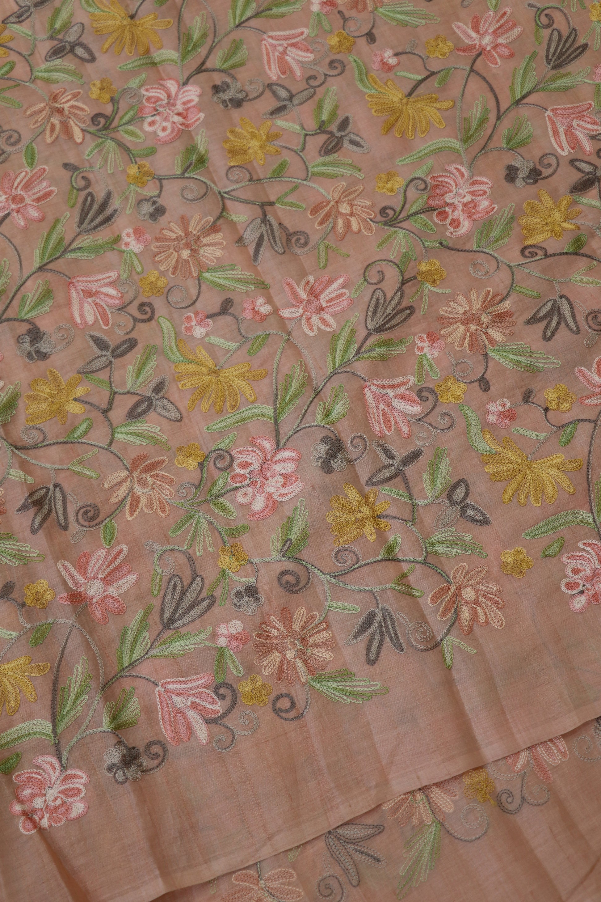 Cashmere Work Embroidery On Pure Tussar Fabric