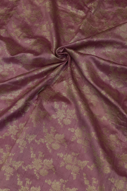 Floral Golden Zari Woven Pure Raw Silk Fabric