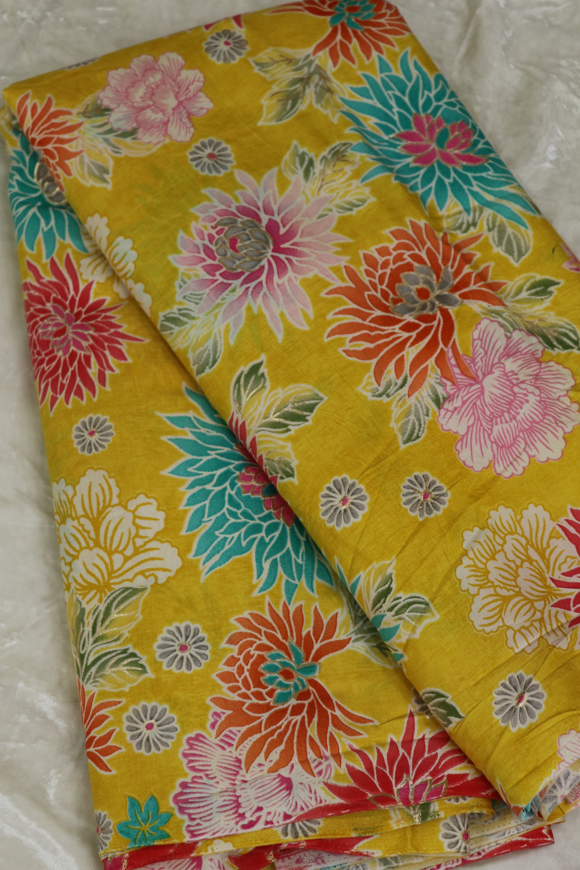 Floral Printed Mul SilkFabric Highlited With Gold Foil