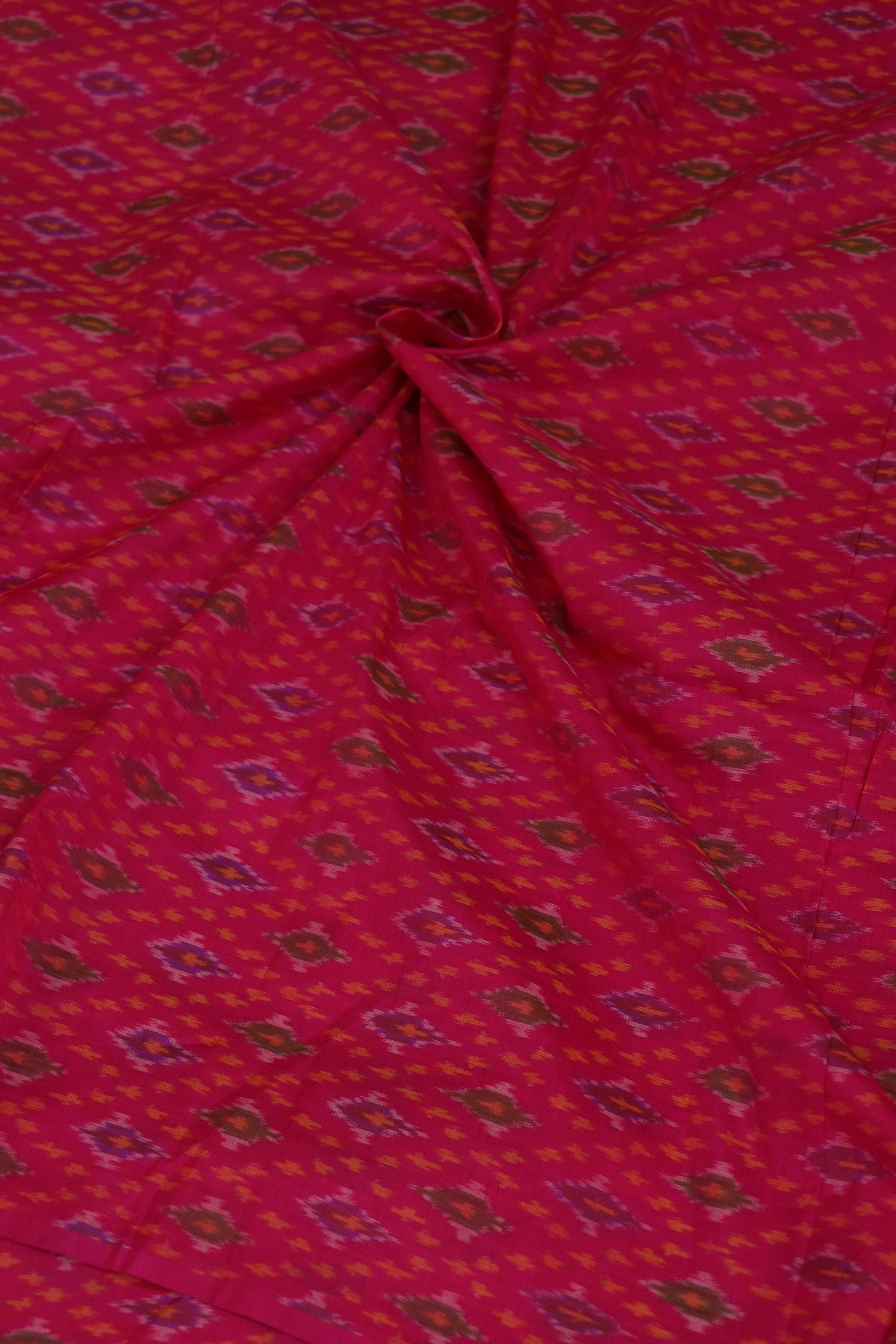 Fuschia Pink Pure Cotton Silk Ikkat Hand Woven Fabric
