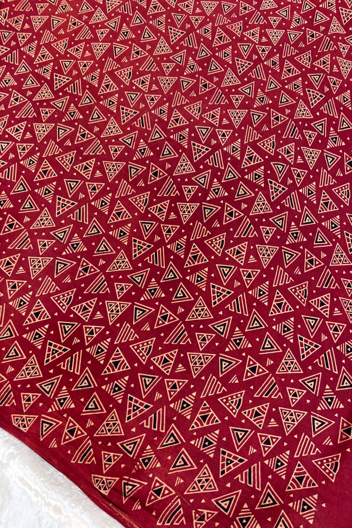 Geometric Shapes Ajrak Printed Pure Cotton Fabric