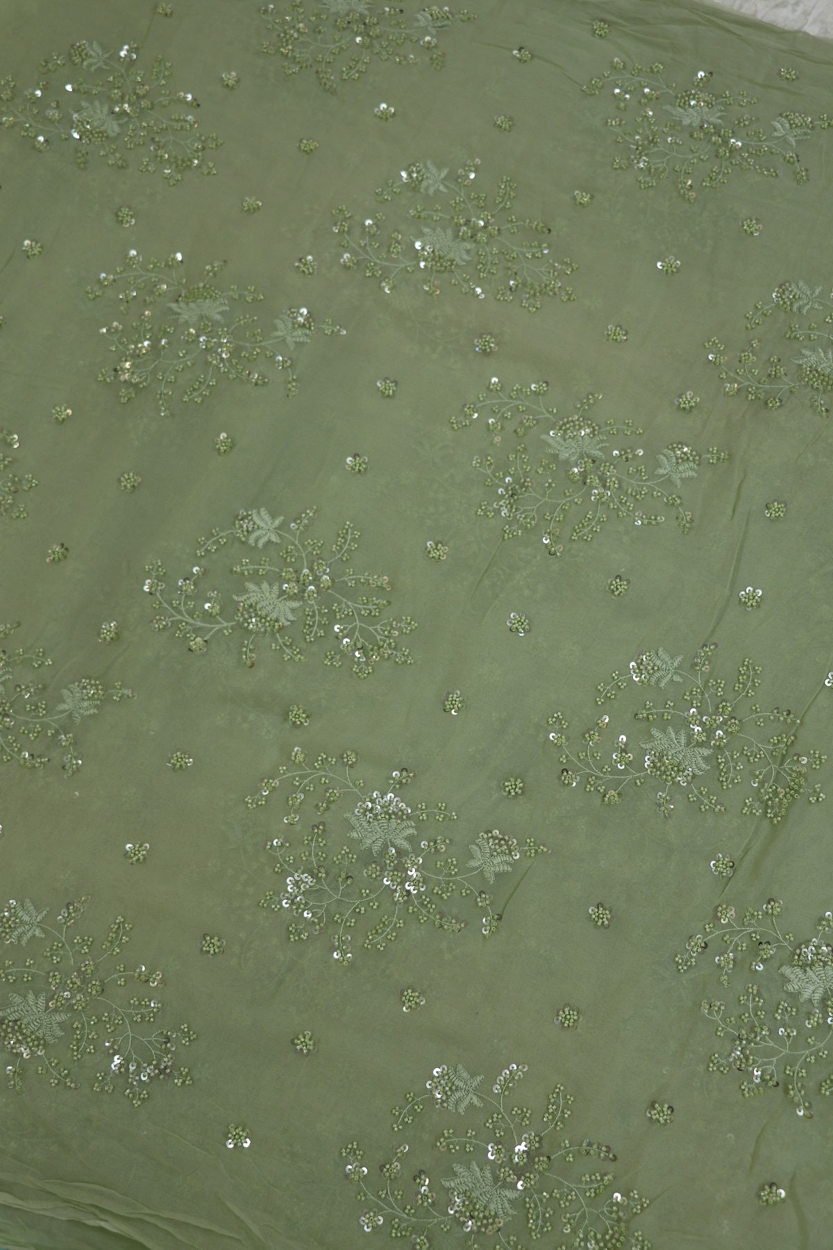 Georgette Embroidered Fabric With Cutbeads & Sequins