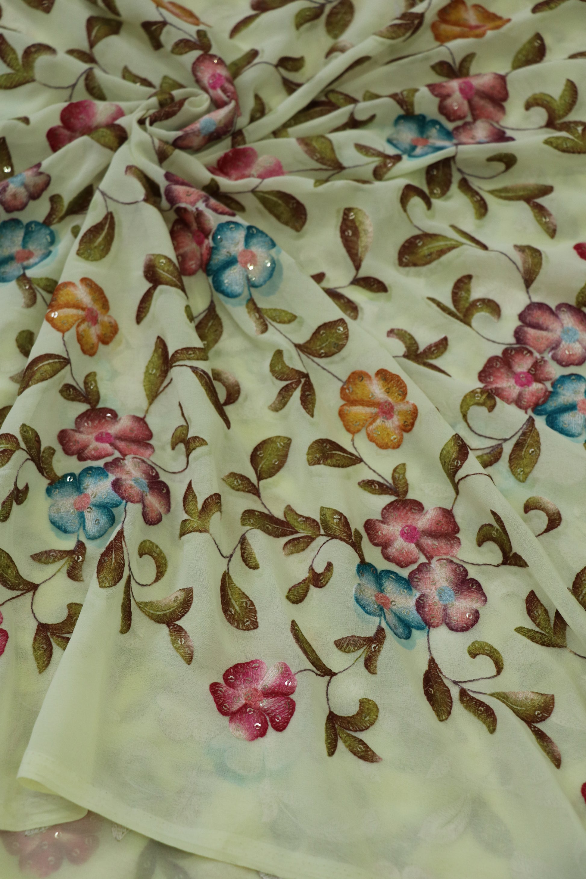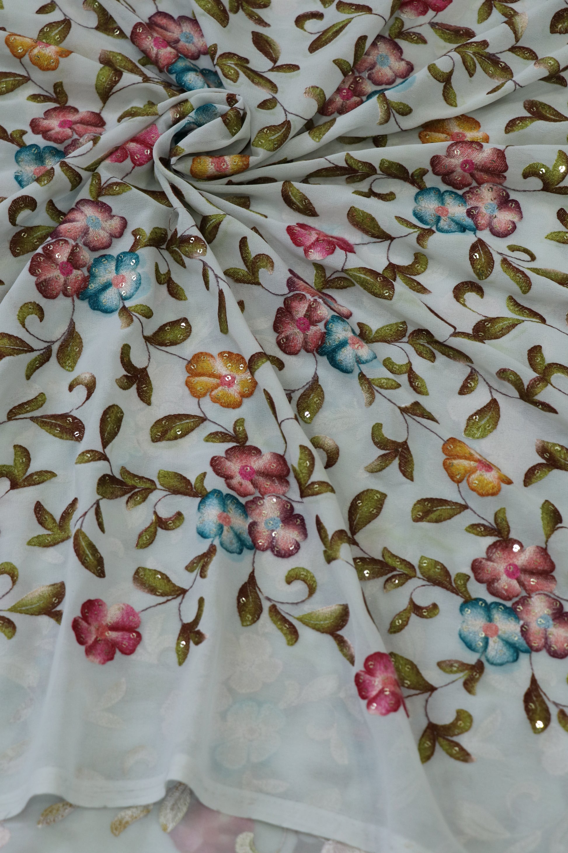 Printed Georgette Fabric Embroidered & Highlighted With Sequins