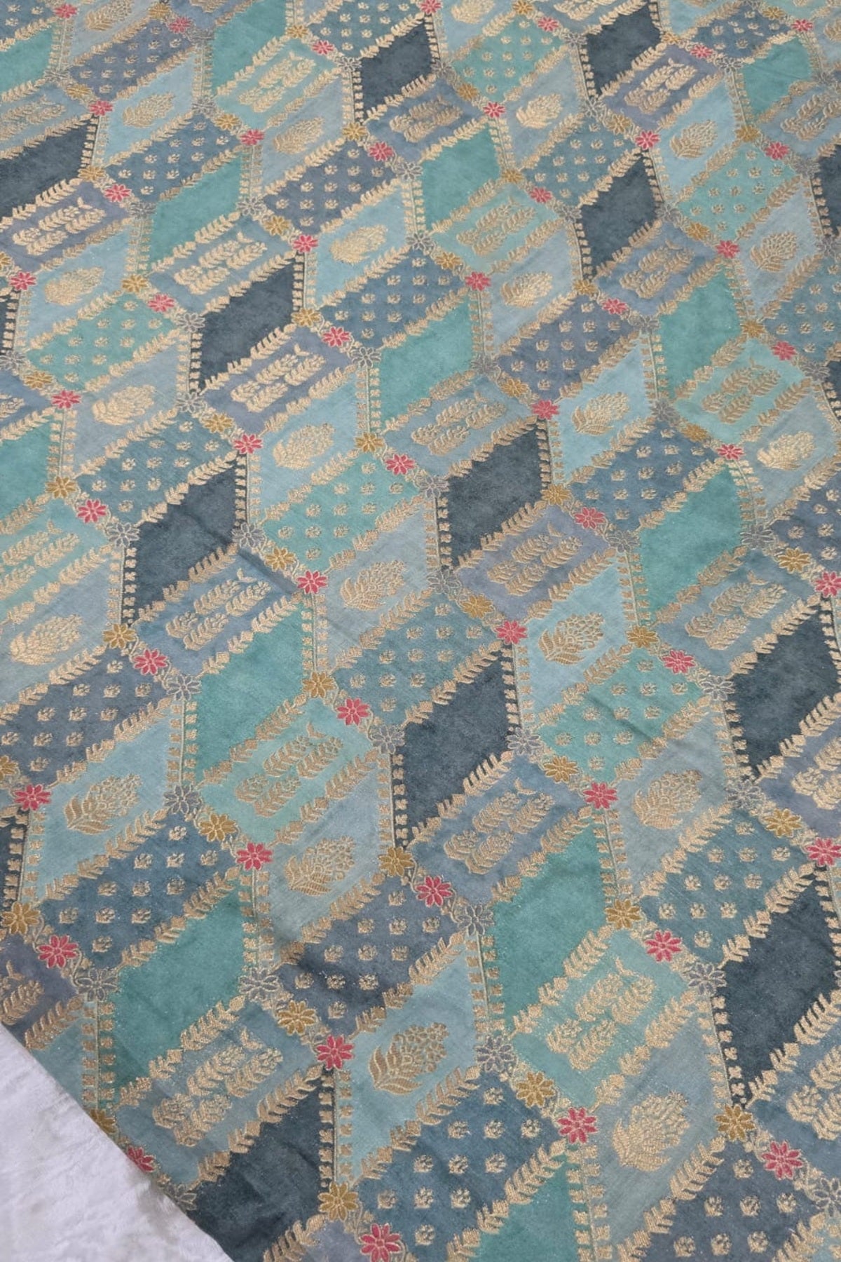 Gold & Meenakari Floral Woven Rangkat Printed Dola Silk Fabric