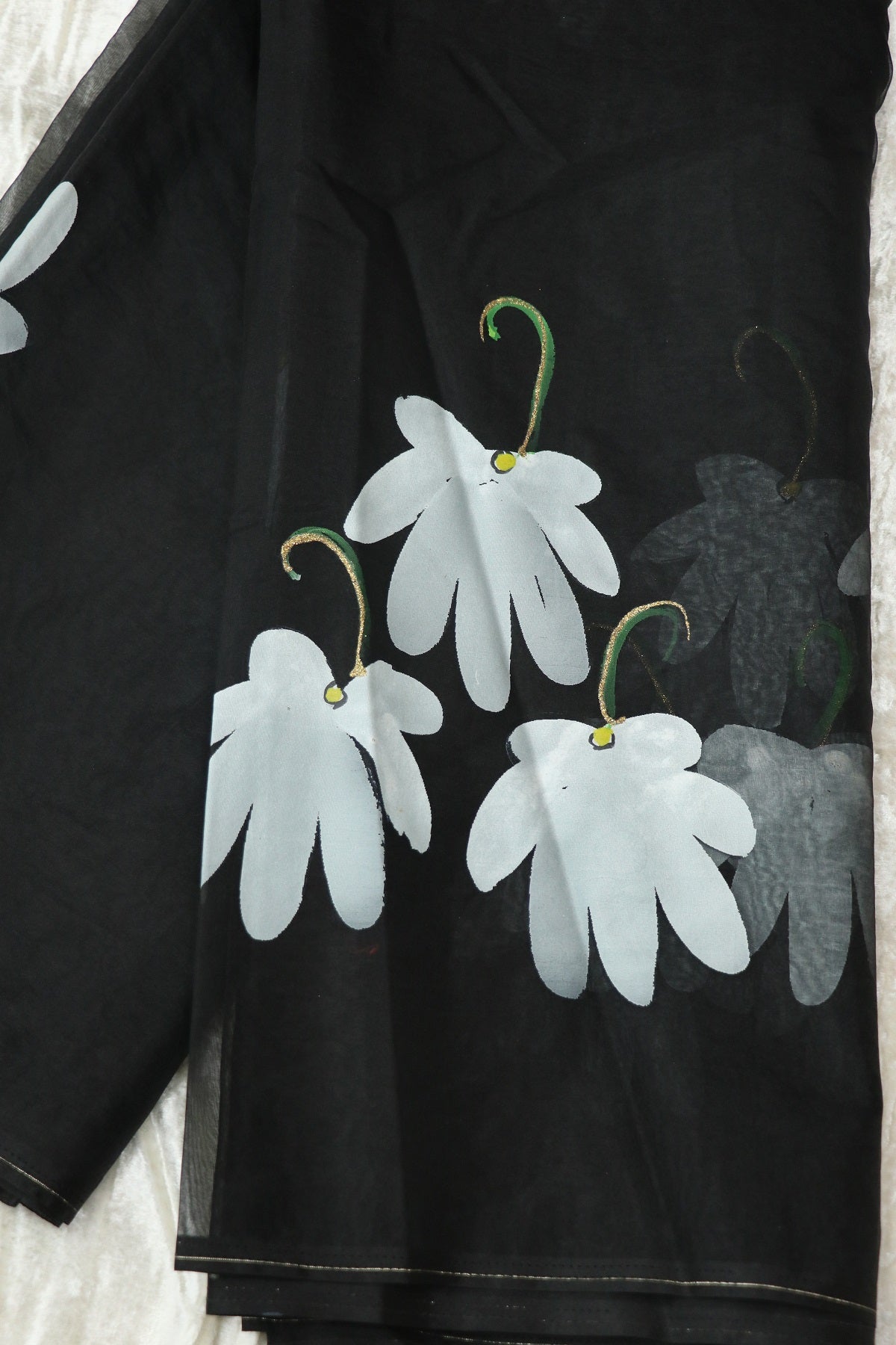 Hand Brush Painted Organza Saree Fabric (5.5Mtr)