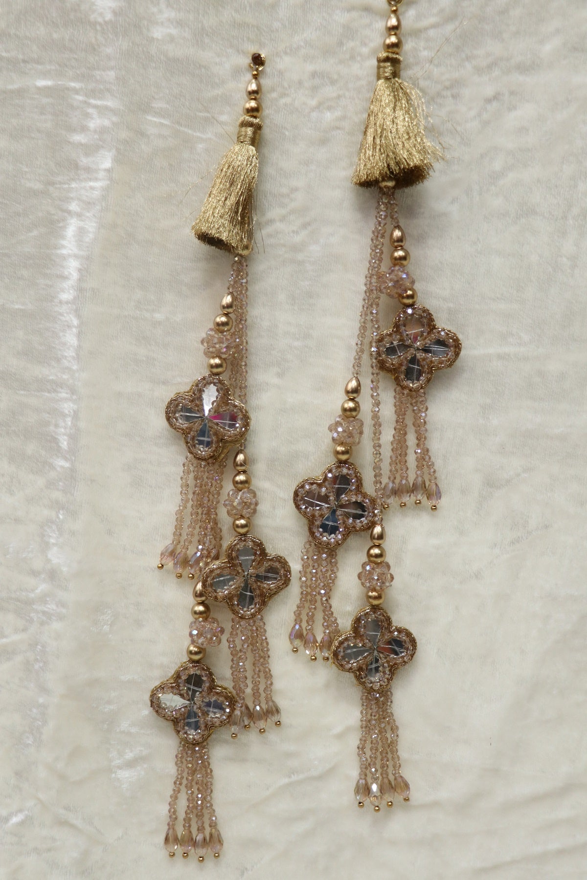Honey Gold Zari Thread Lehenga Latkans With Mirrors & Glass Crystal Beads