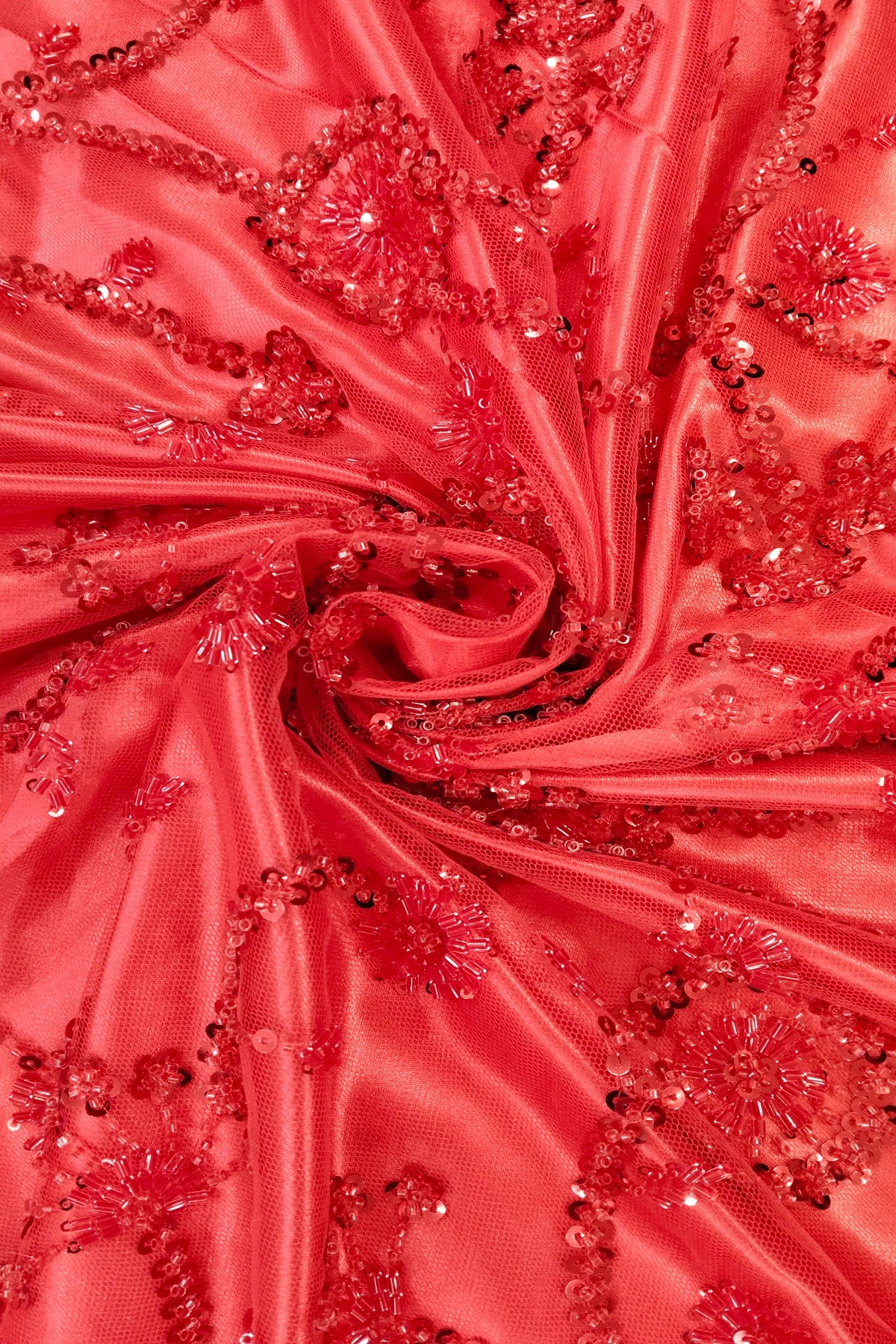 Self Coloured Sequins & Cutbeads Floral Lattice Embroidered Net Fabric
