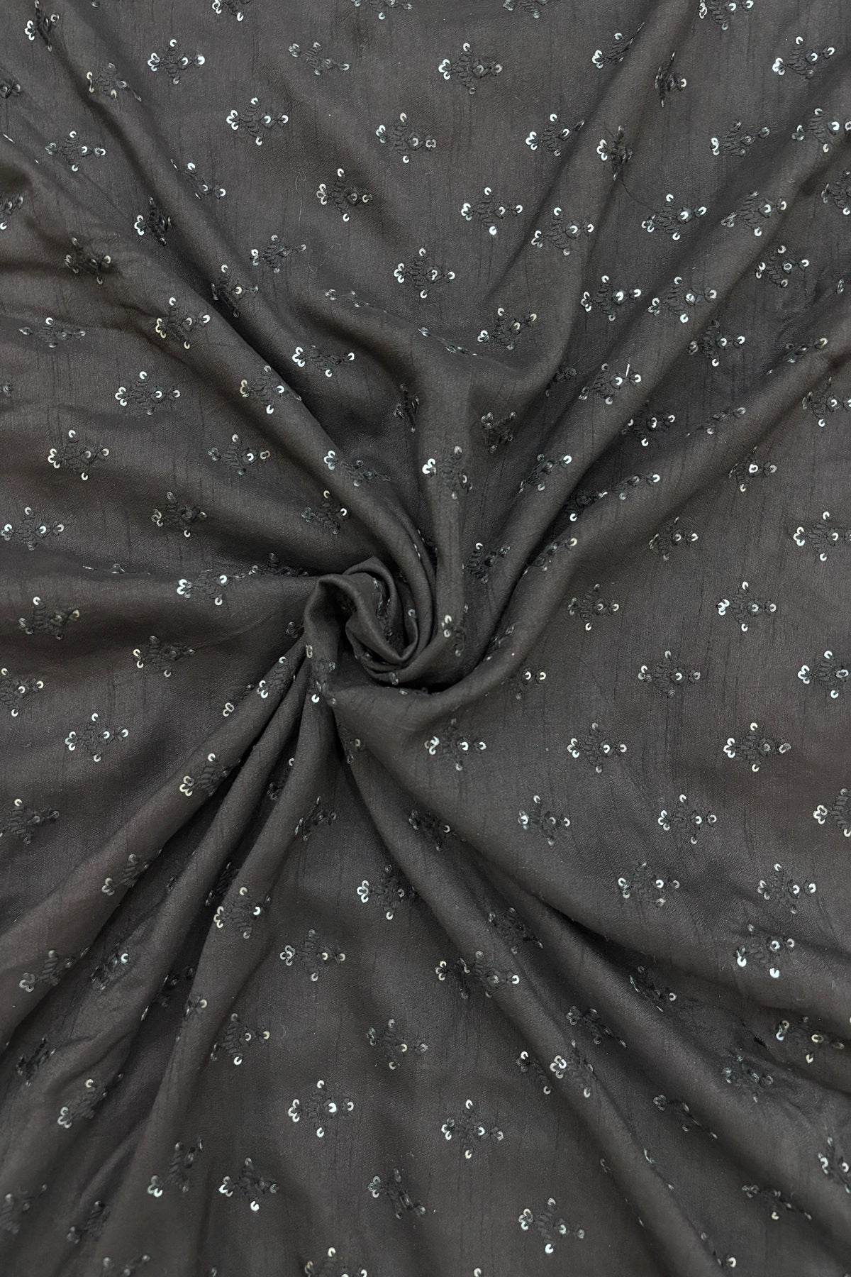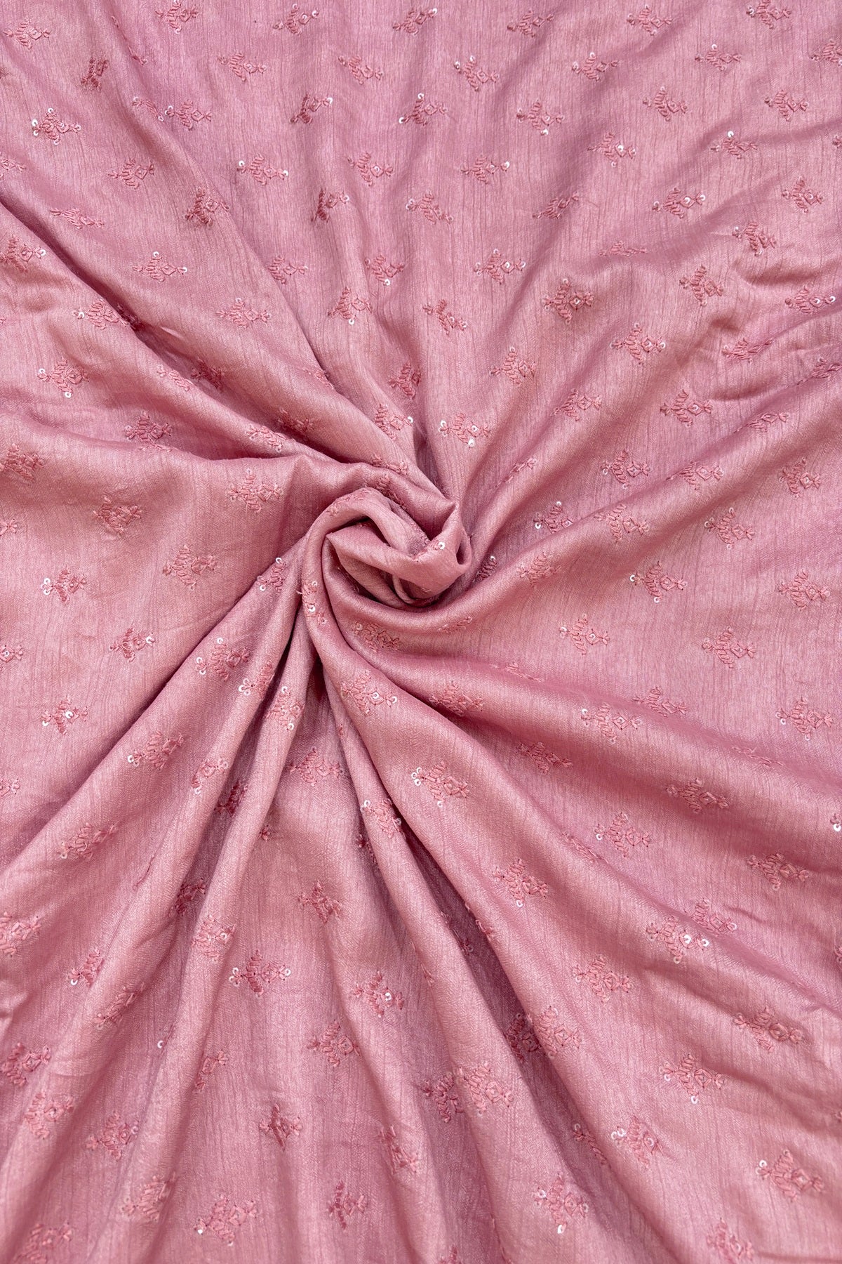 Mughal Embroidered Self Floral Butties With Sequins Highlighted Falling Raw Silk Fabric