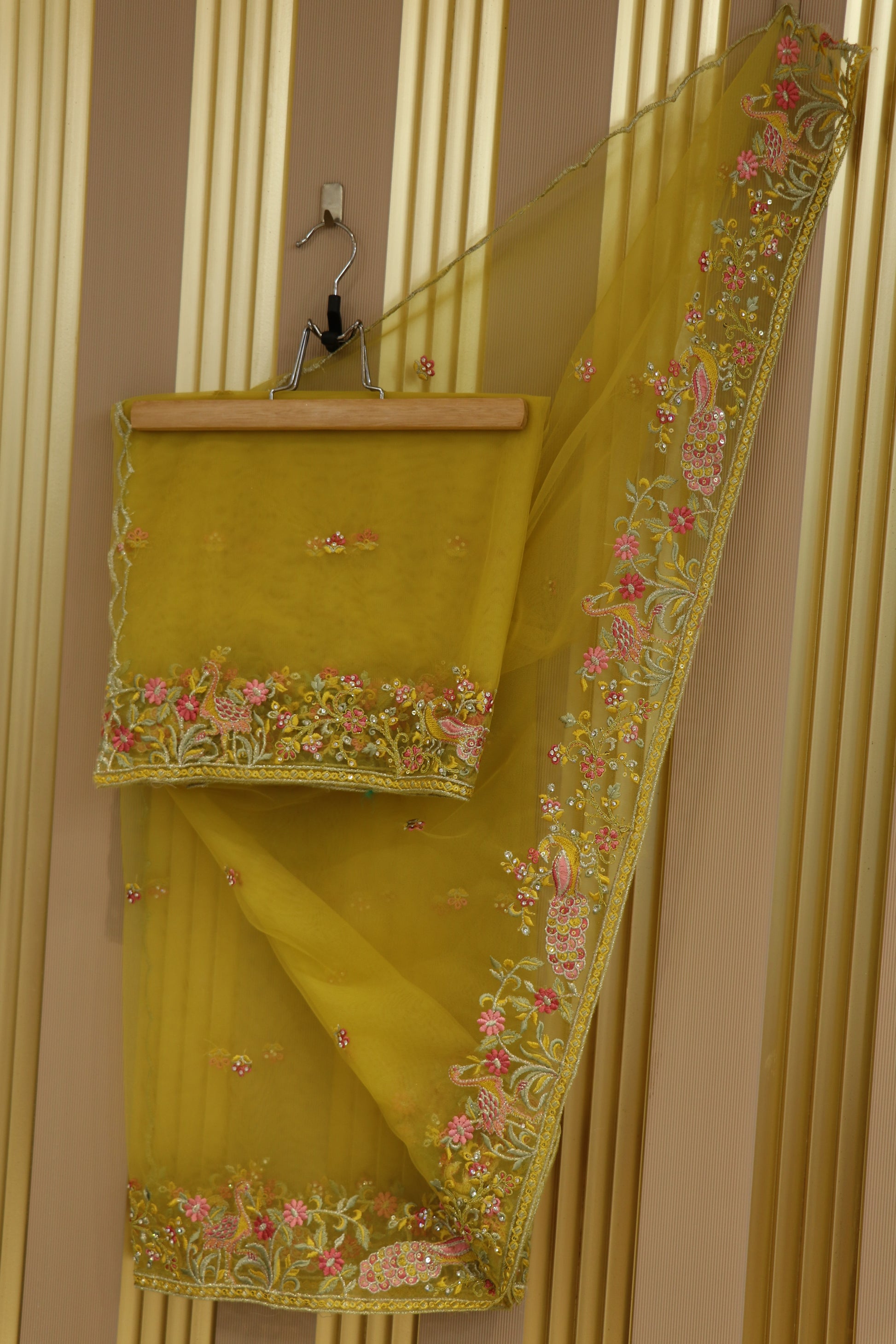 Net dupatta with thread embroidery,zari and stone work highlighted