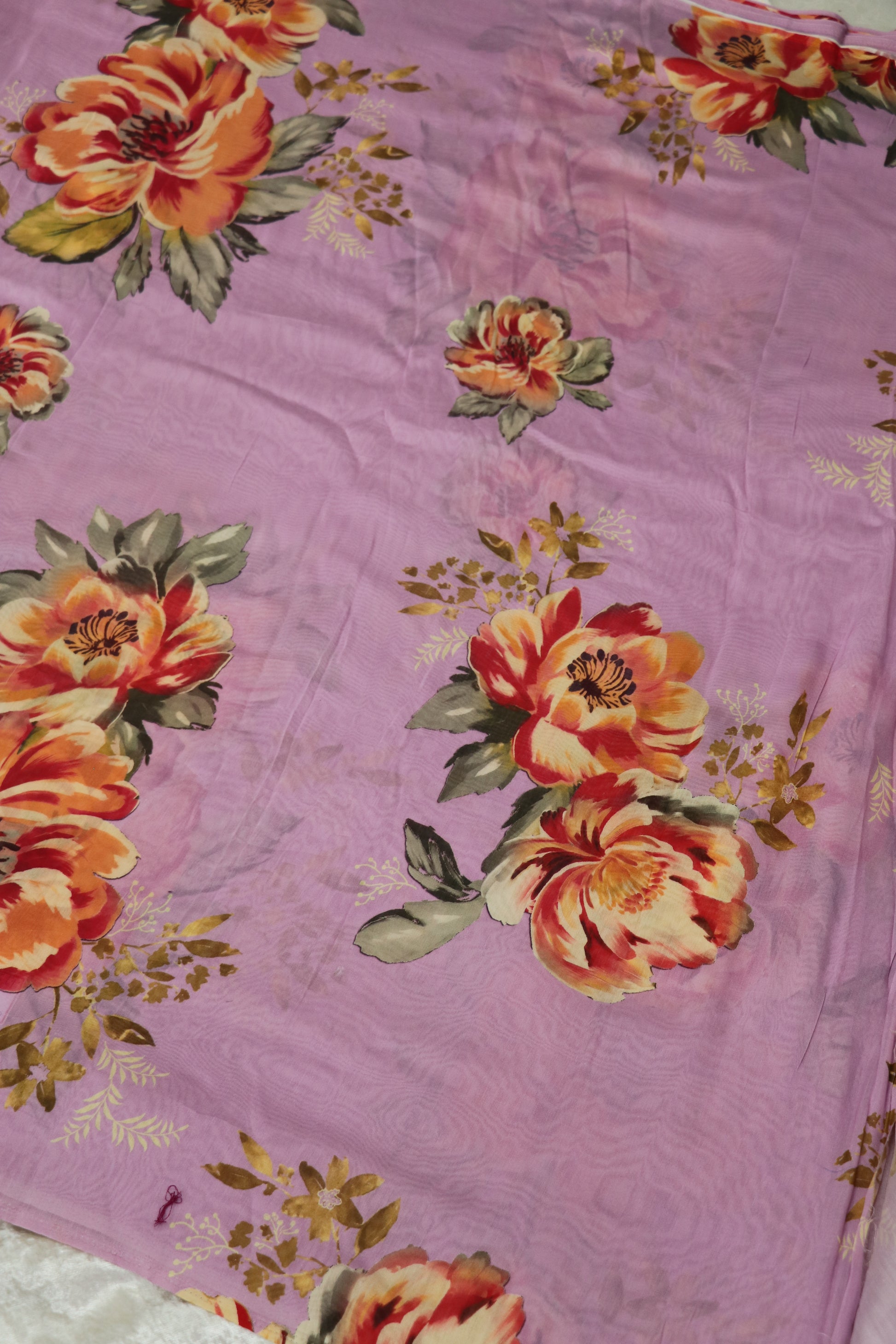 Orchid Purple Floral Printed Mul Chanderi Fabric