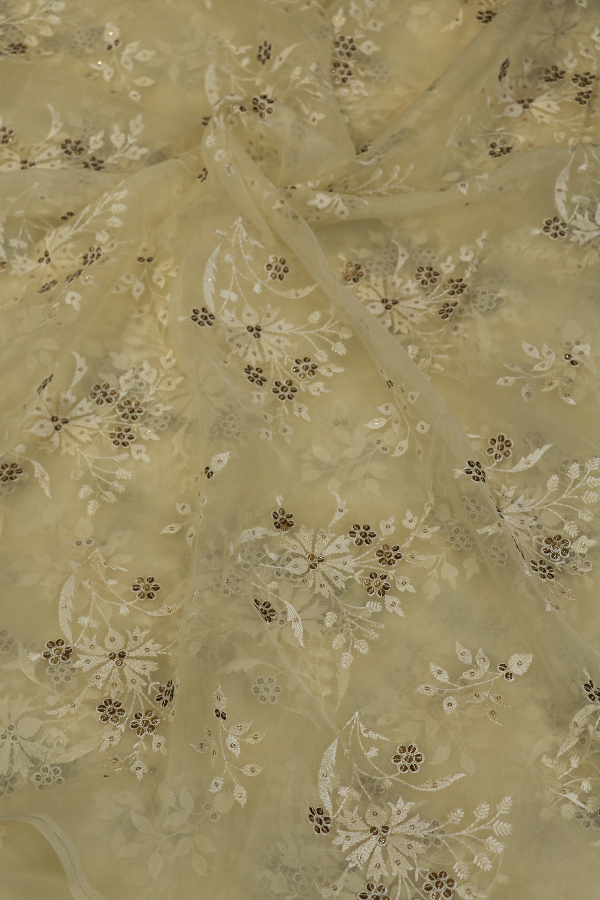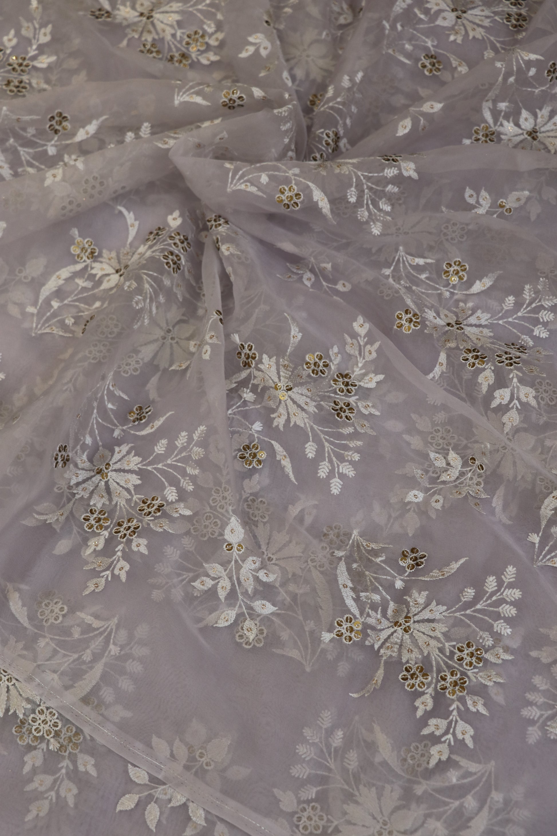 Organza Floral Embroidered Bunches Fabric With Sequins