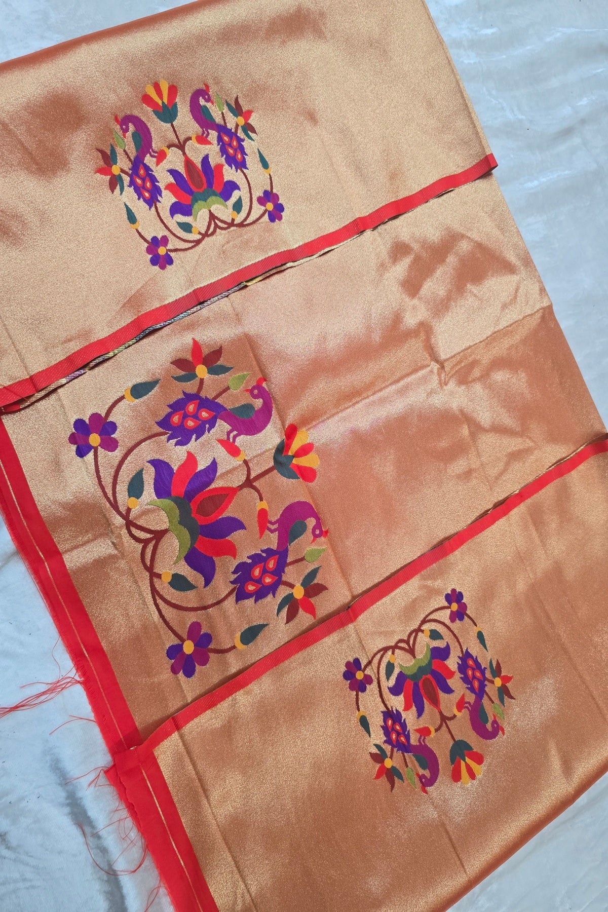 Peacock & Lotus Floral Bunch Paithani Woven Blouse Fabric (1 Mtr Cut)