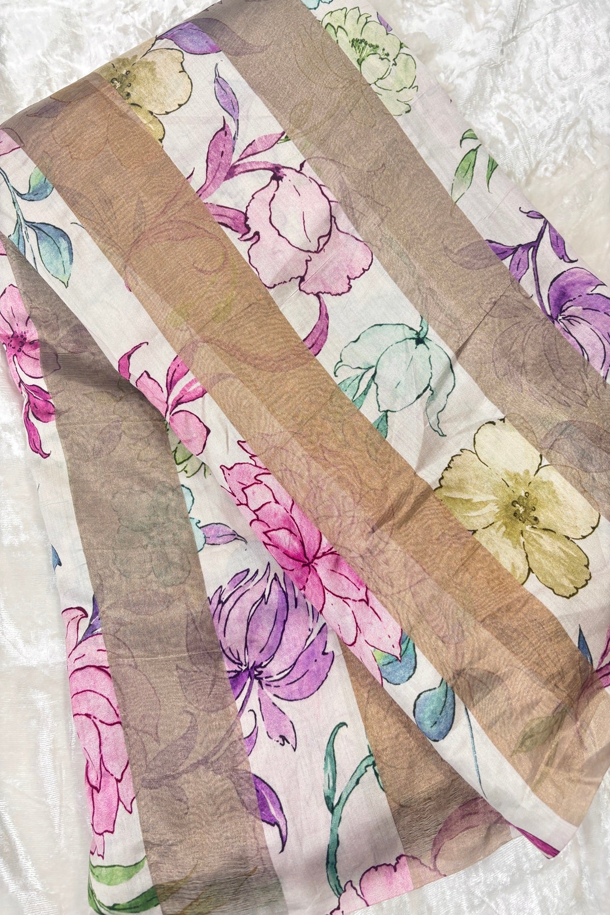 Pink & Purple Floral Printed Pure Tissue Organza & Chiniya Fusion Fabric