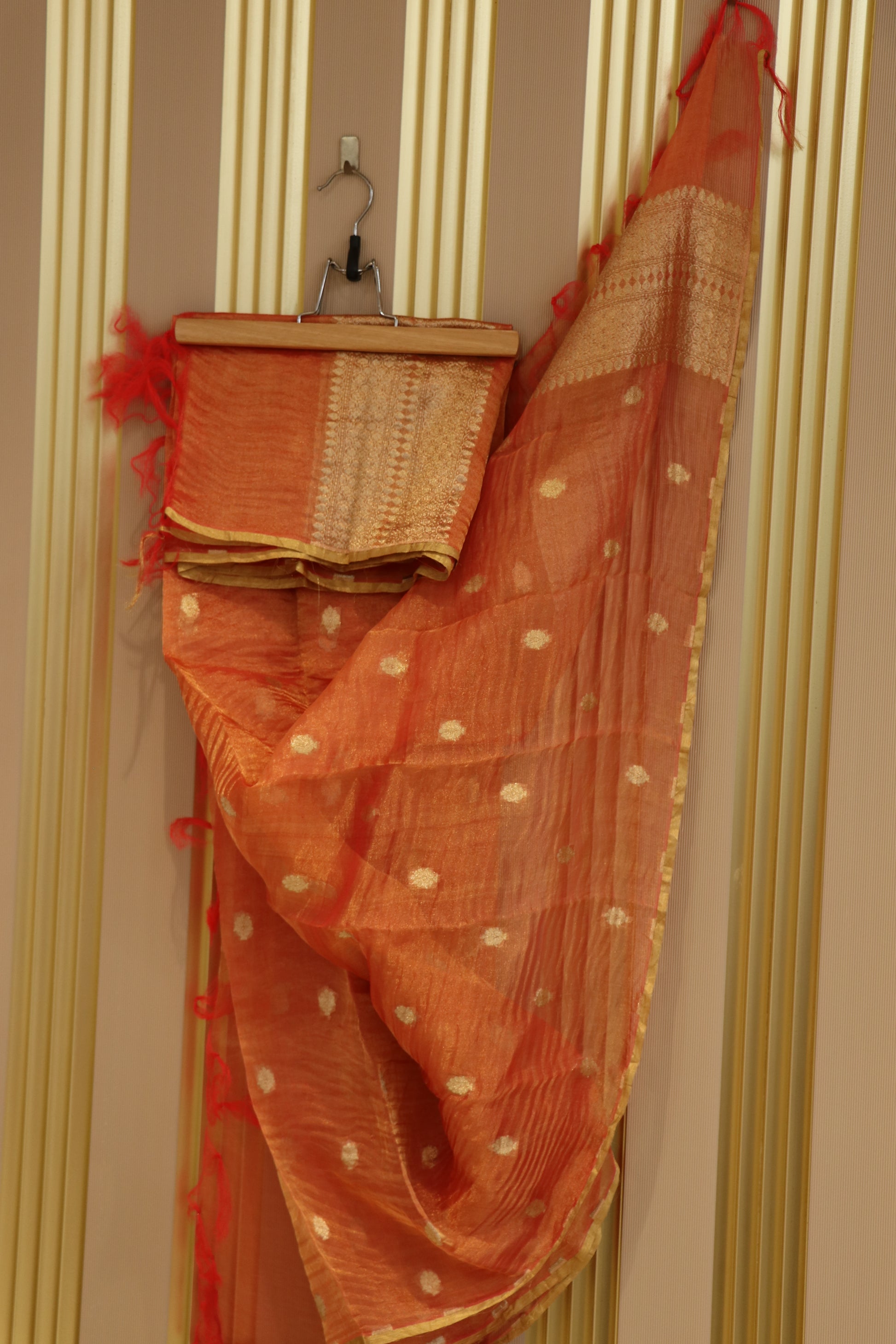 Pure banarasi tissue crushed dupattas with gold zari weaved buttis