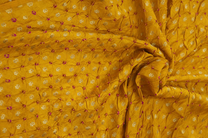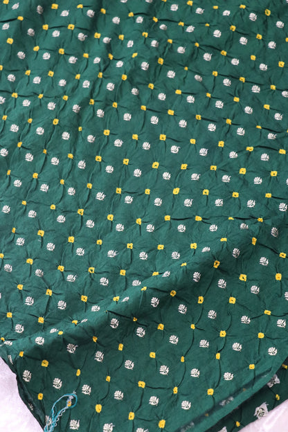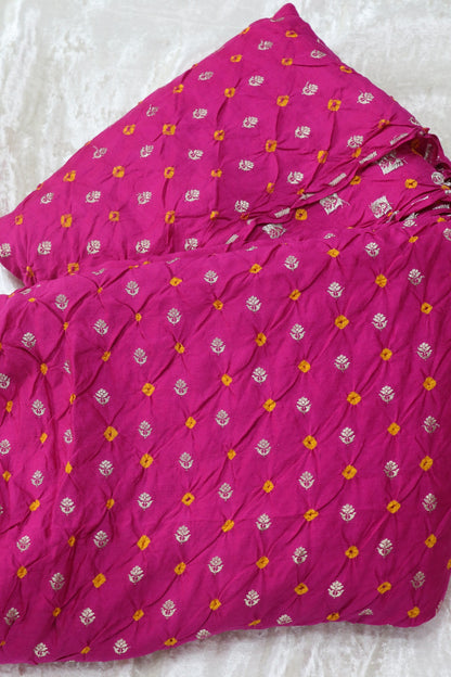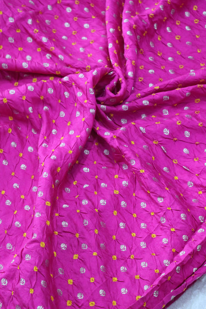 Pure Bandhani Chiniya fabric is prized for its lustrous silk base and intricate hand-tied resist-dye patterns, giving it vibrant contrasts and timeless appeal. Lightweight yet rich in drape, it is perfect for traditional ensembles. This fabric is especially used for blouses,lehengas,a line tops,jackets,Kurtis,croptops and festive kurtas adding elegance to weddings and occasional wear…