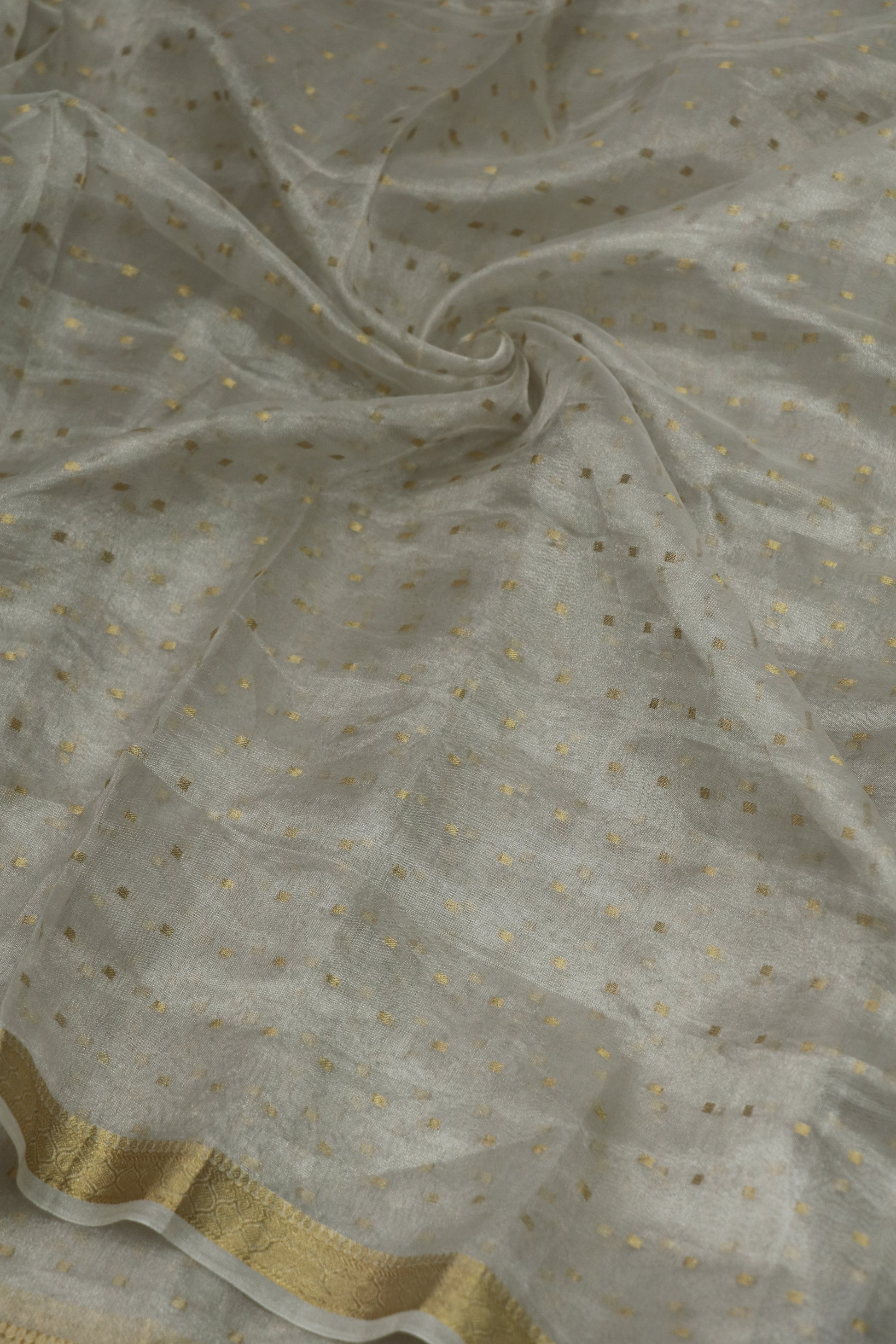 Pure Tissue With Polka Dots Woven & A Small Intricate Border Fabric
