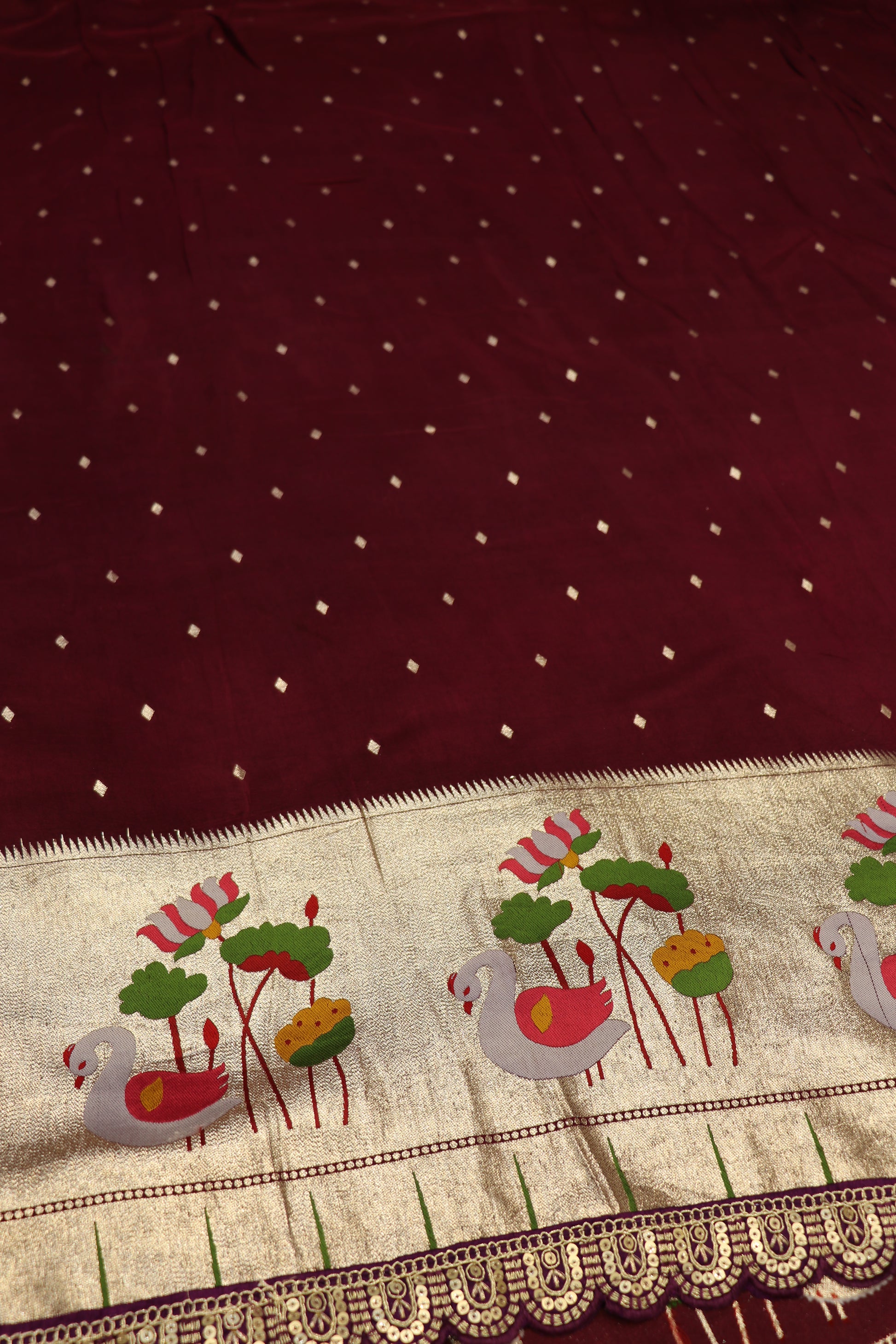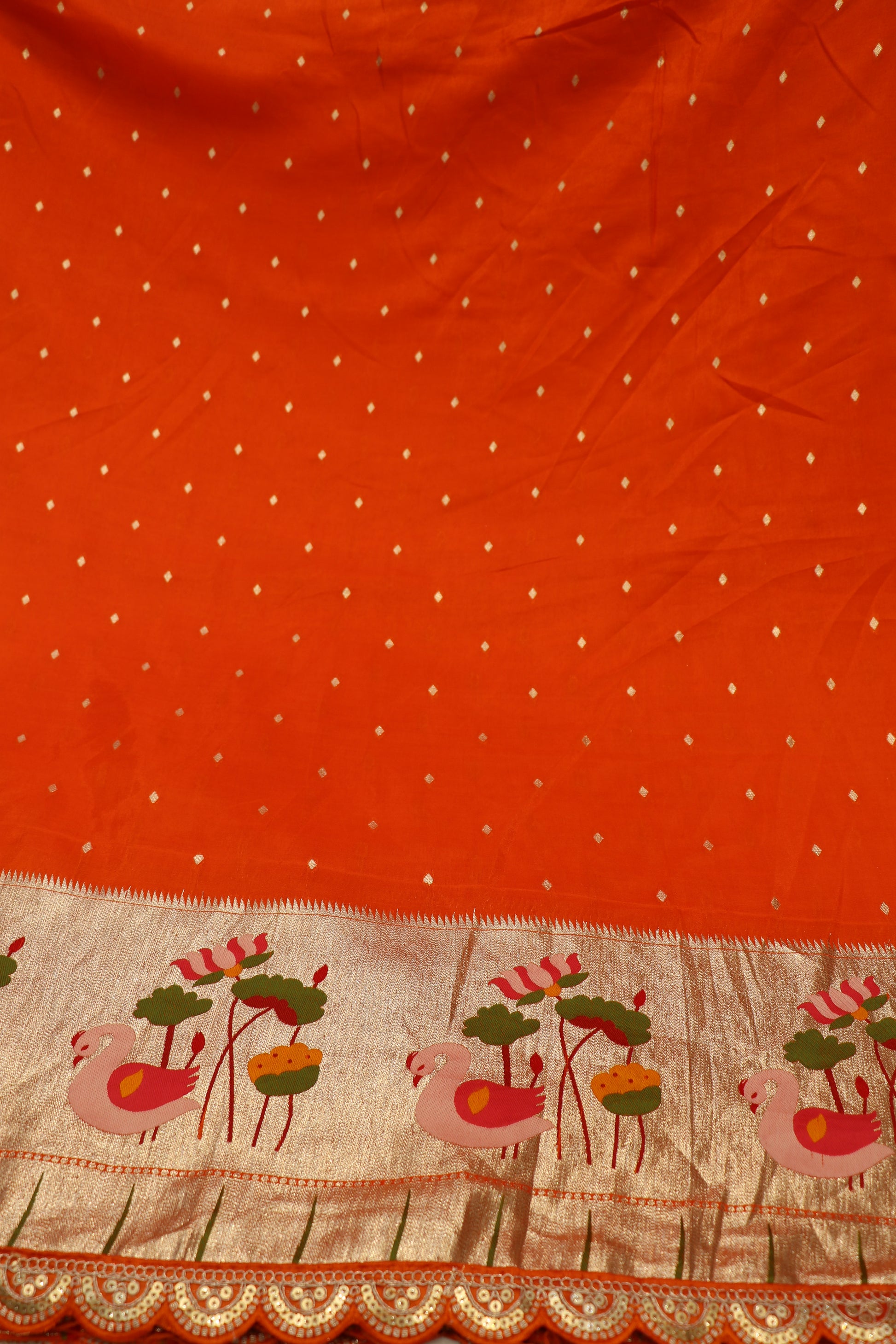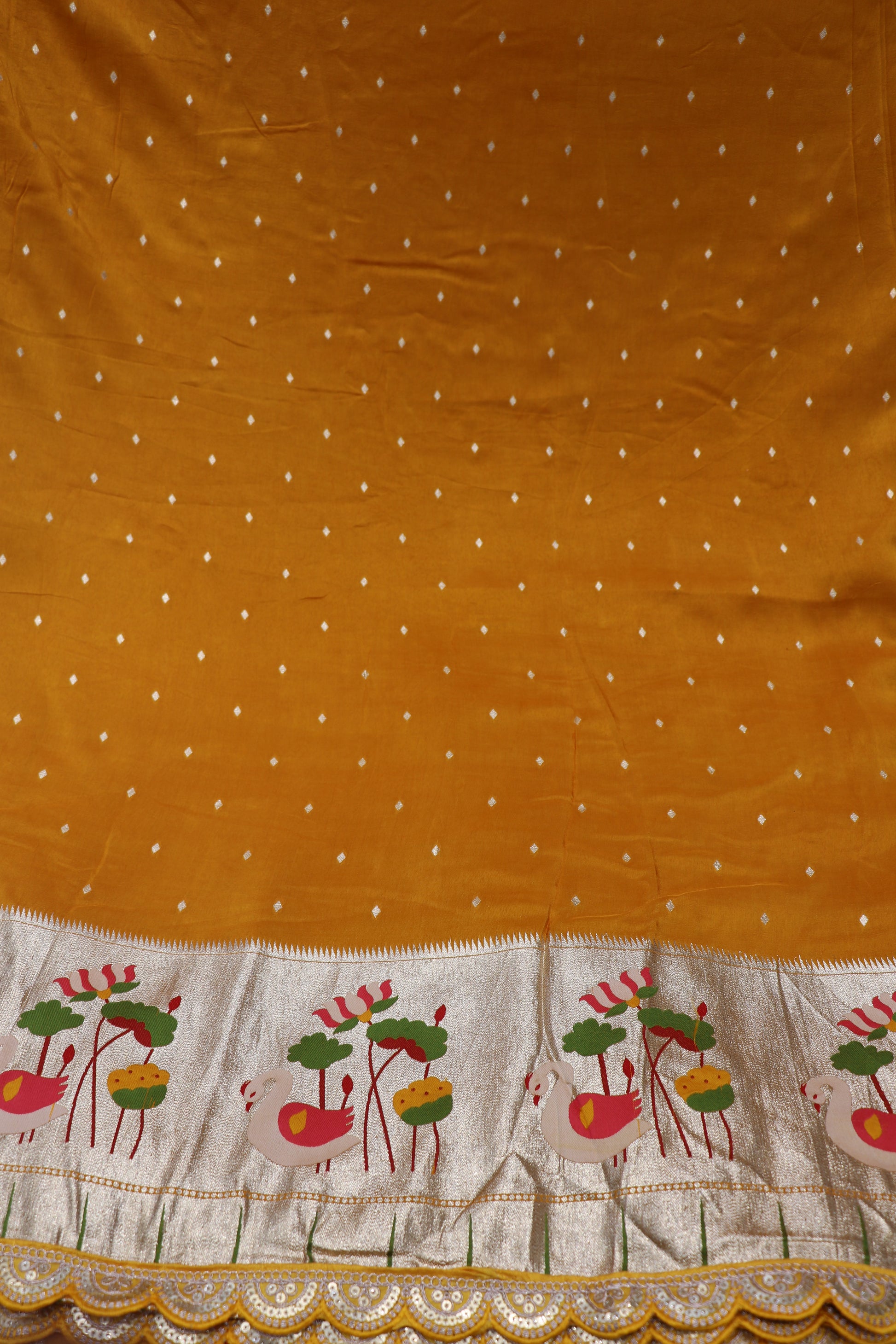 Russian Silk Woven With Pithani Border And Scalop Cutwork Dorie Lace Fabric.