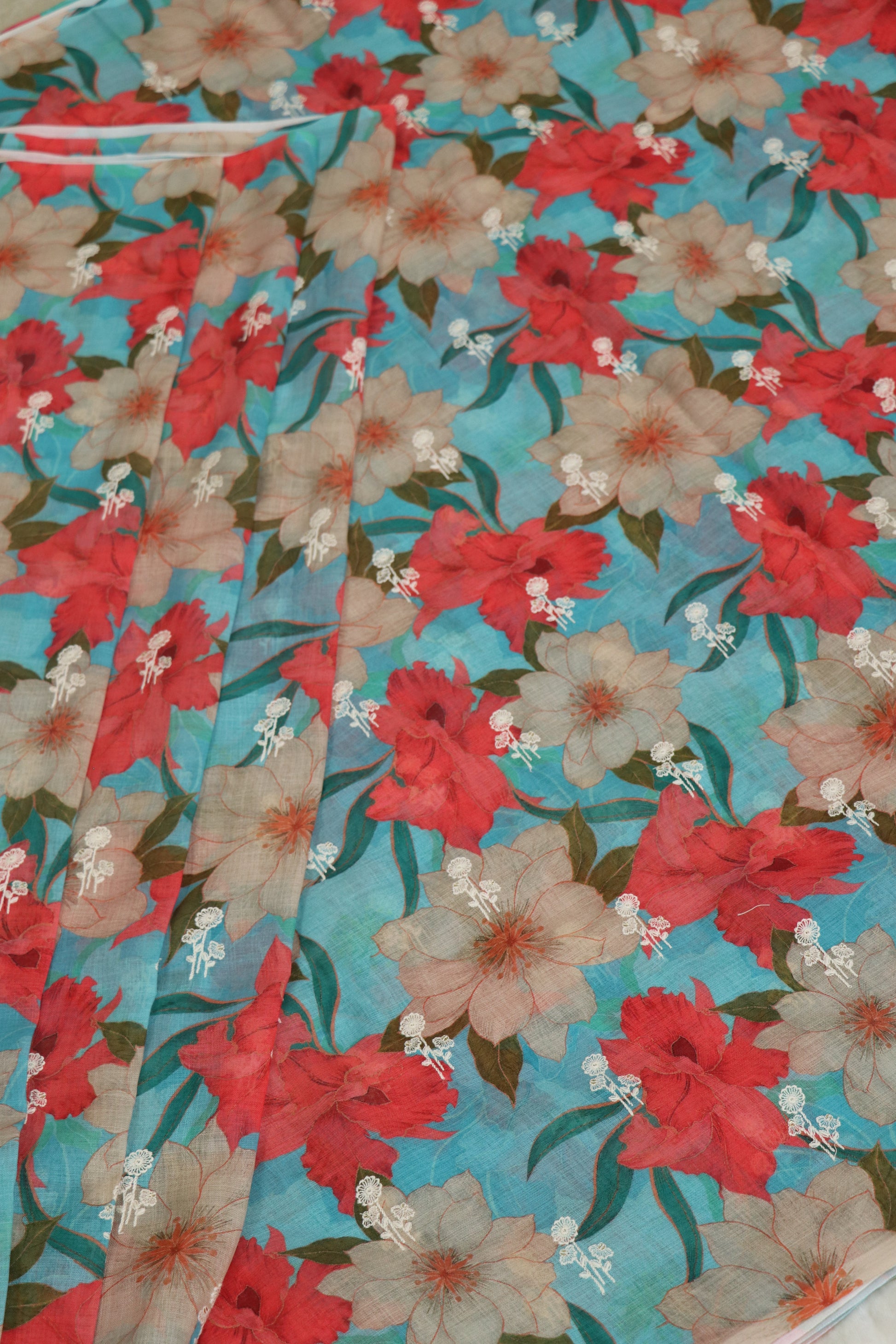 Semi Lenin Dual Shaded Floral & Embroidered Fabric