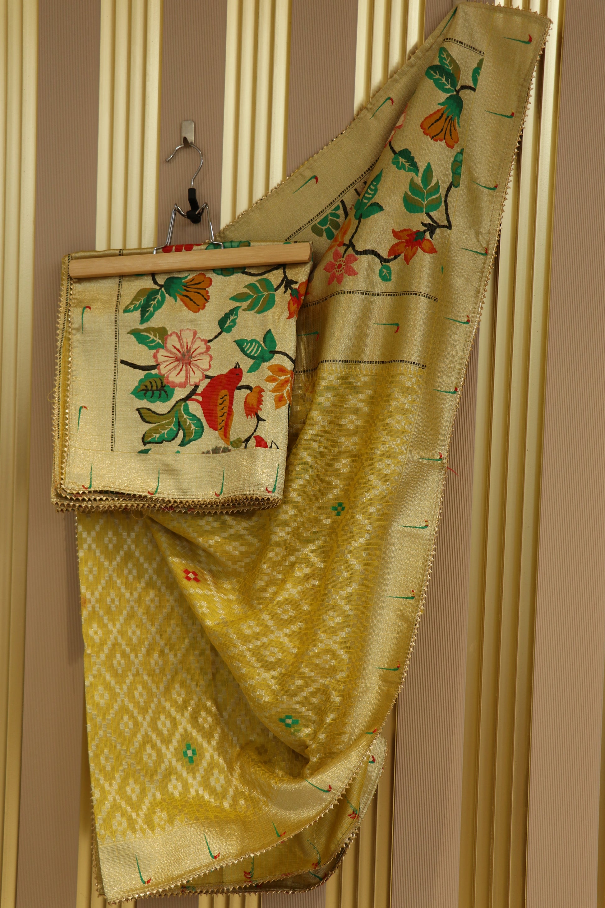 Semi tissue cotton kota with pithani muniya border and gota lace.