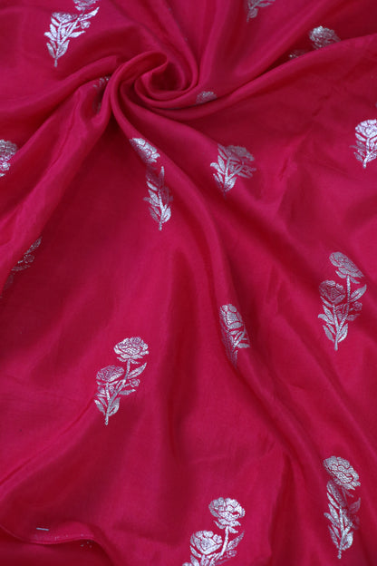 Russian Silk Jacquard zari Weaves Roses fabric exudes timeless charm with its rich, silky texture and jacquard-woven rose motifs that offer a graceful sheen. Lightweight yet luxurious, this fabric drapes beautifully, making it ideal for traditional Indian wear like kurtis, lehengas, blouses, and dupattas, as well as for elegant casual outfits such as tunics, ethnic tops, and flowy jackets.