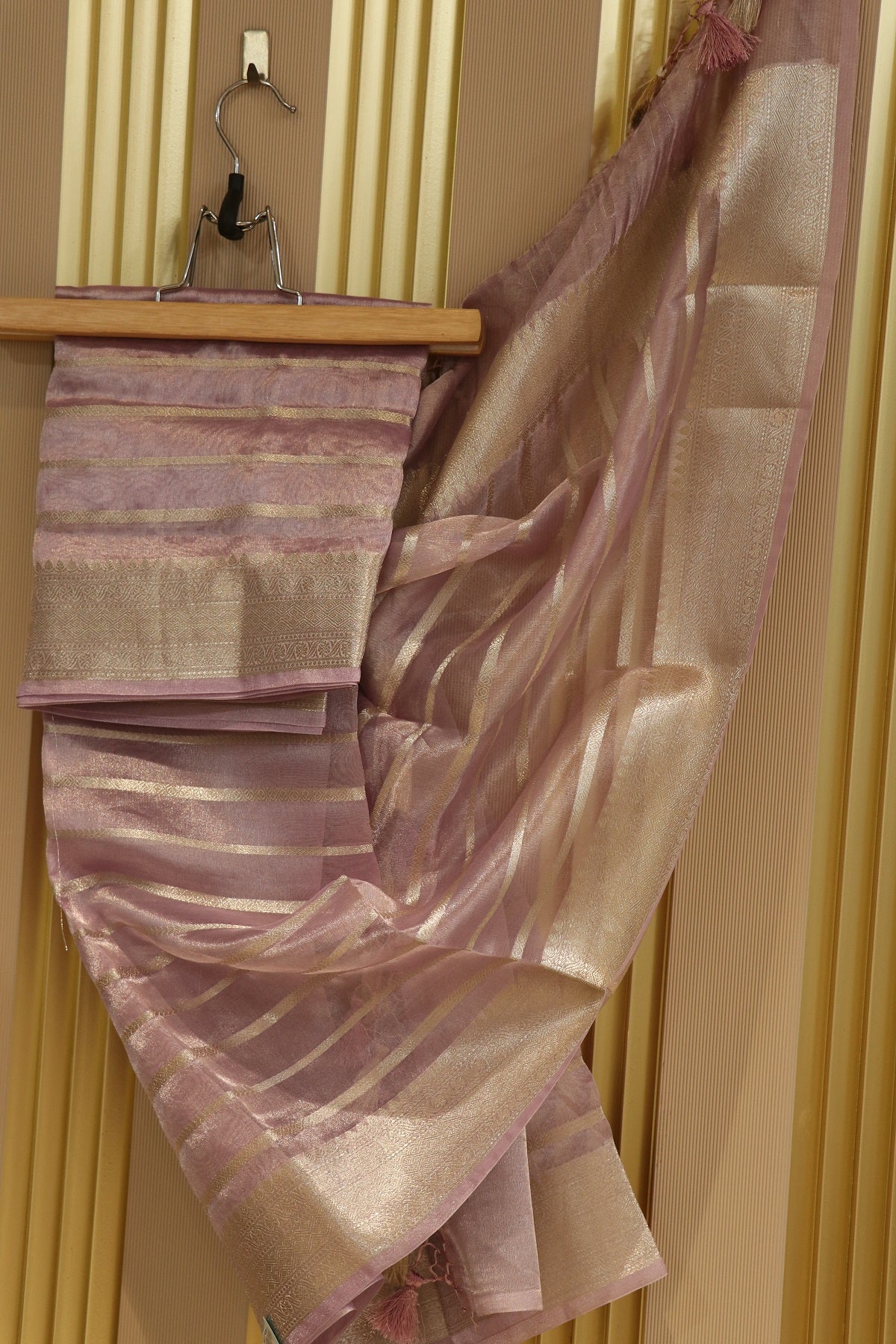 Shades of water Gold Tissue Zari Organza dupatta with Zari Woven Line