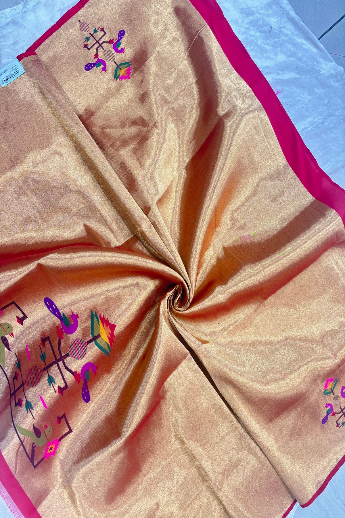 Centuries traditional Indian fabric known for its vibrant colors, intricate designs and rich heritage, featuring traditional Mor poppat floral bunch motif adding a touch of cultural elegance to any outfits like Jackets, blouses and more.