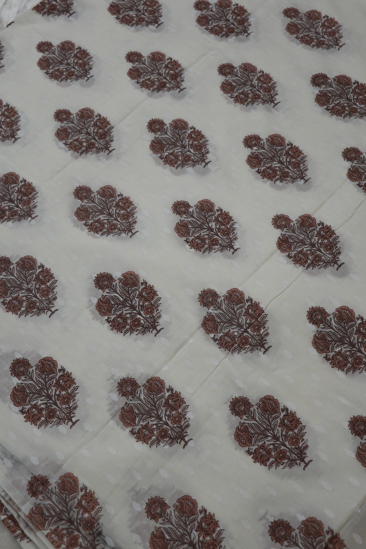 White Mughal Printed Jaipur Cotton Self Jacquard Fabric