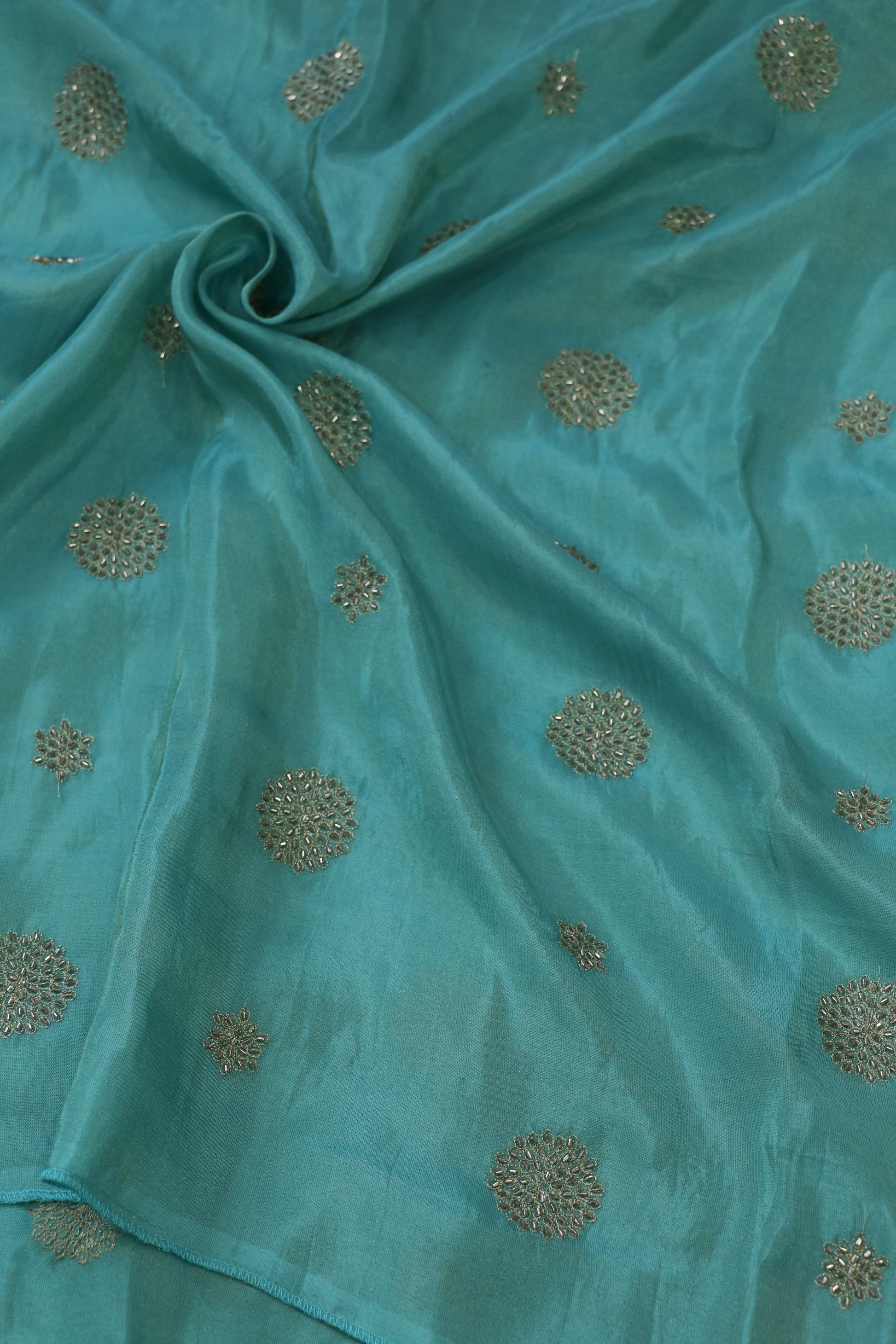 Zari Thread & Cut Bead Embroidered Floral Bunches Uppada Tissue Fabric
